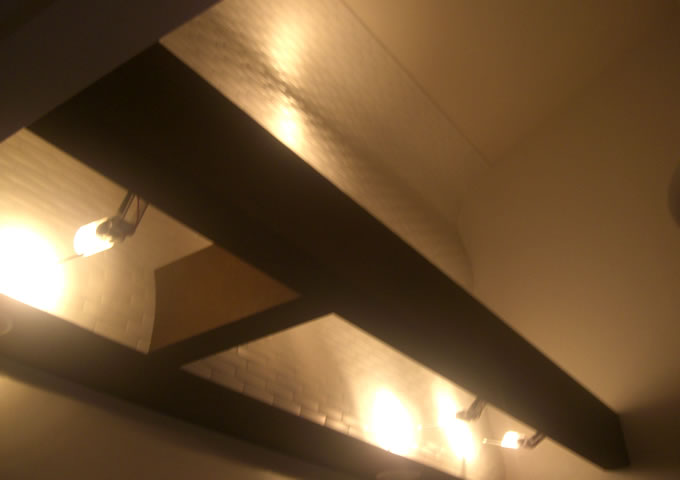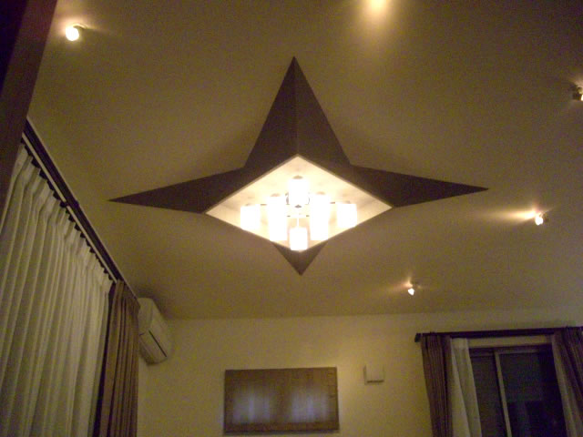 【電気工事】天井造作です。もともと照明器具だけの天井にオブジェを加え、一味違う雰囲気を演出します。他にはない世界で一つだけの天井造作をご提案いたします。